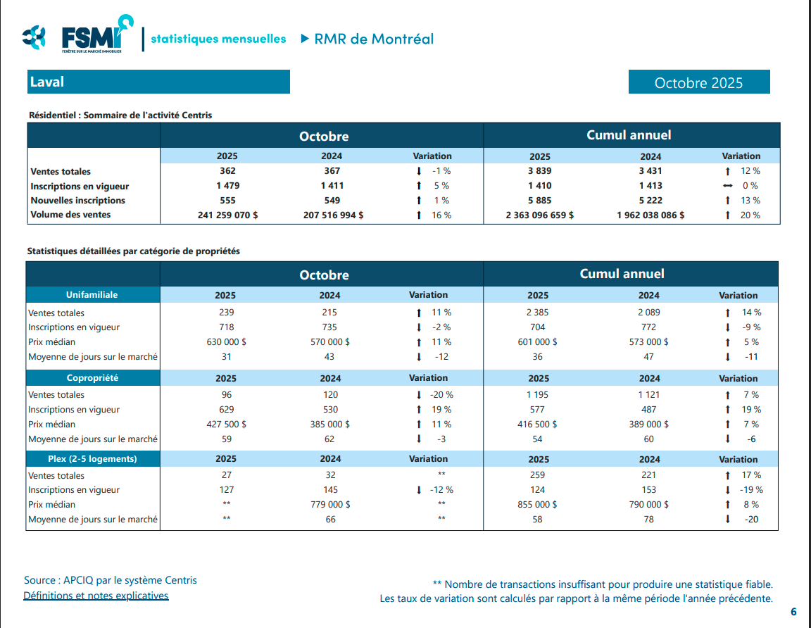 Statistiques du marché immobilier à Laval